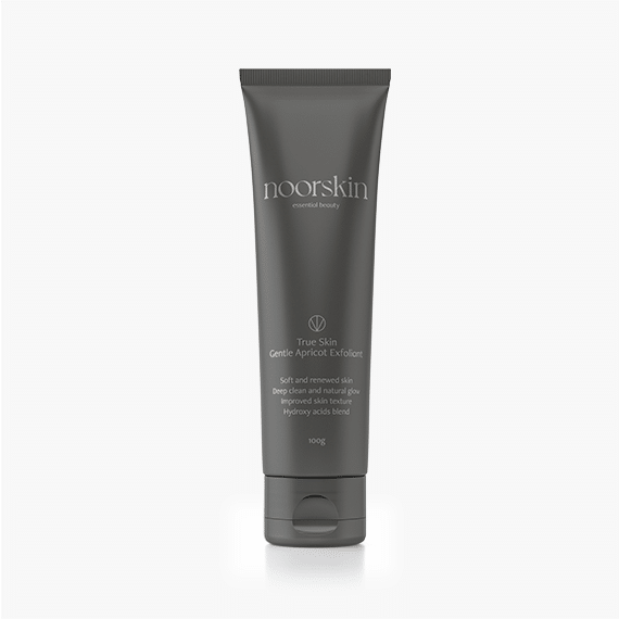 Gel esfoliante facial com microesferas naturais de semente de damasco.