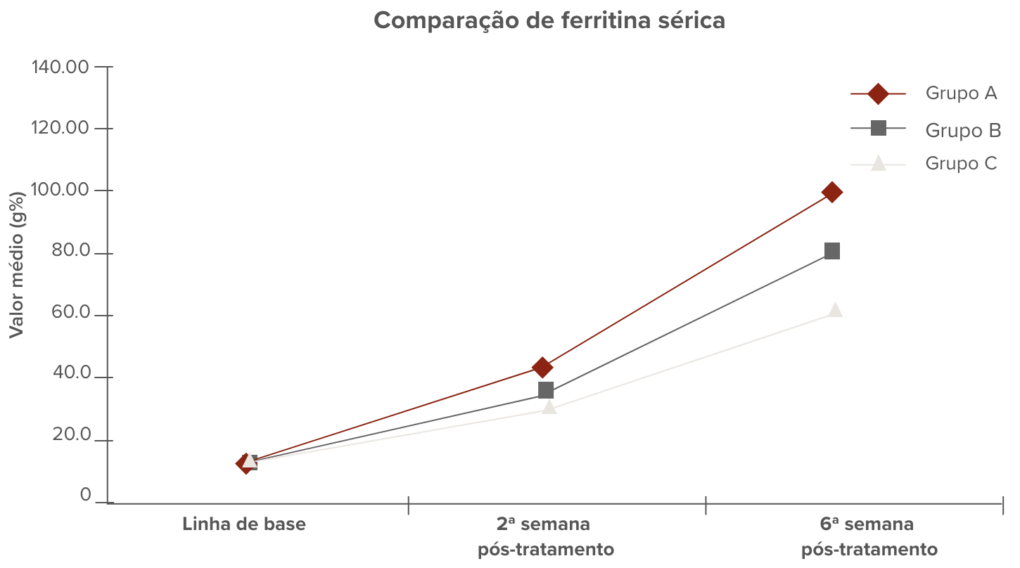Conforme observado nos resultados compilados, o complexo carboximaltose apresentou desempenho superior em todos os parâmetros avaliados.