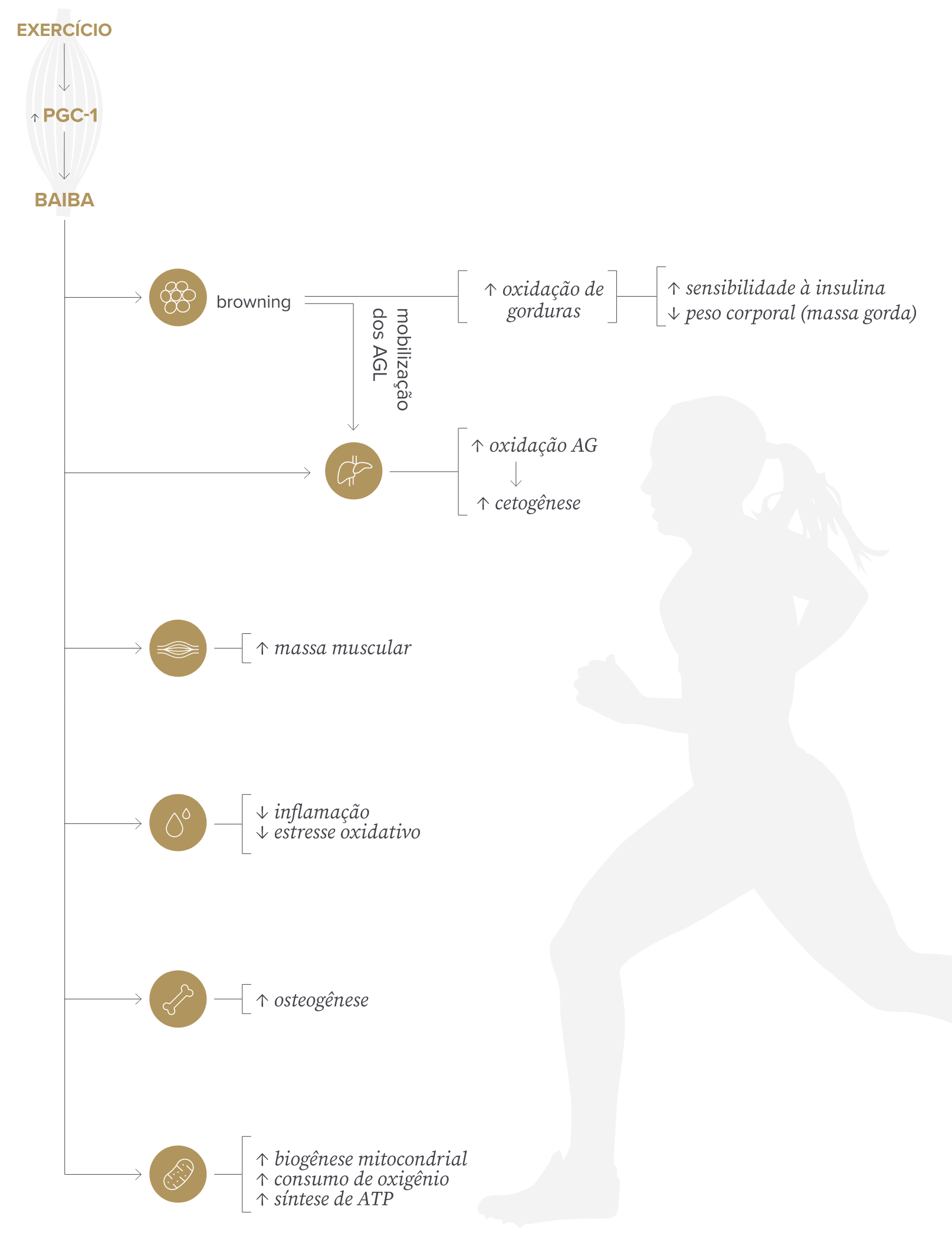 Figura: vias moleculares e efeitos fisiológicos do BAIBA