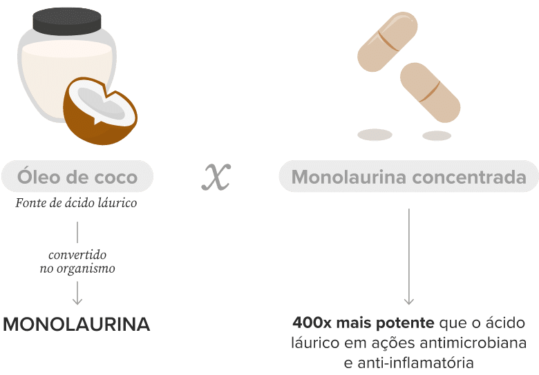 O óleo de coco atua como uma fonte indireta desse composto, uma vez que o ácido láurico presente em sua composição pode ser convertido em monolaurina no organismo.